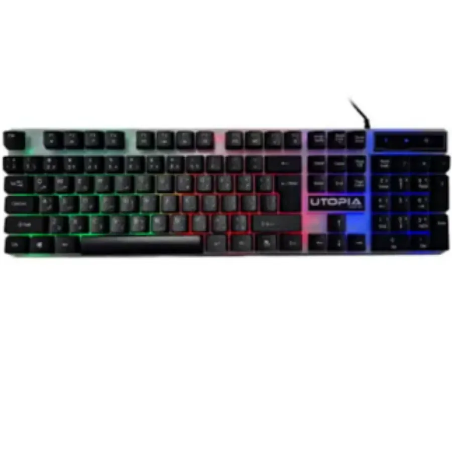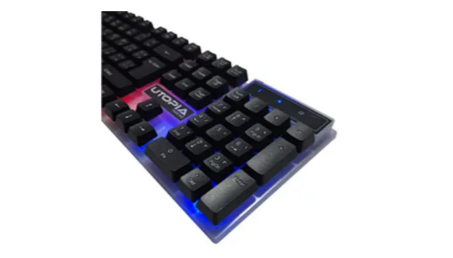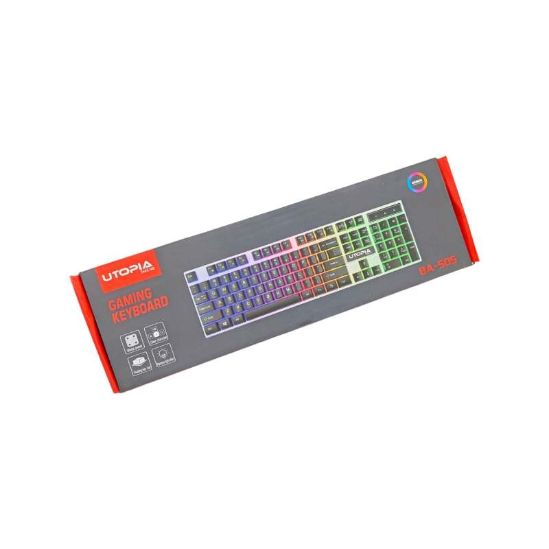 كيبورد الألعاب Utopia BA-505 هو الاختيار الأمثل لمحبي الألعاب بفضل تصميمه المميز وإمكانياته المتقدمة. يتميز بإضاءة LED بألوان قوس قزح القابلة للتخصيص، مما يضفي جواً رائعاً على تجربة اللعب. كما أنه مزود بتقنية anti-ghosting لضمان استجابة دقيقة عند الضغط على عدة أزرار في نفس الوقت. السطح البلاستيكي المتين والخفيف الوزن يوفر متانة ممتازة وسهولة في الحمل، مع تصميم مريح يتيح استخدامه لفترات طويلة دون إجهاد. الكيبورد يدعم التوصيل والتشغيل، مما يجعله جاهزاً للاستخدام فور توصيله.