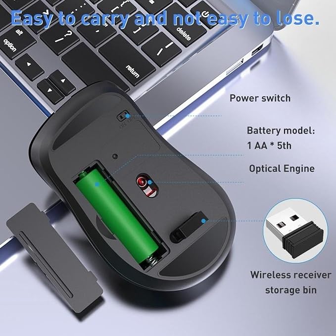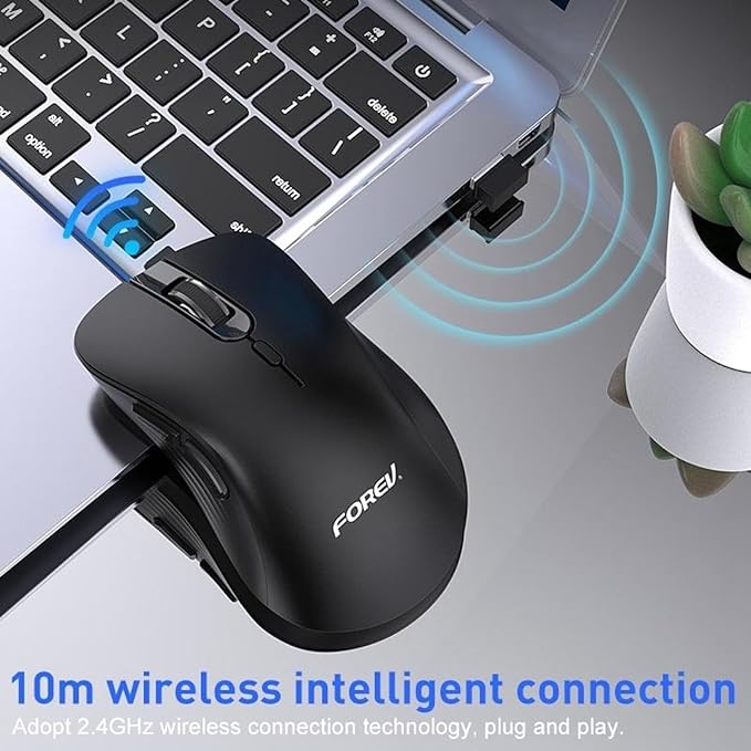 يشتمل الماوس أيضًا على 6 أزرار وظيفية تسهّل التنقل والعمل بكفاءة. يأتي بتقنية اتصال 2.4 جيجاهرتز اللاسلكية مع مستقبل USB نانو لتوفير اتصال ثابت يصل إلى مدى 10 أمتار. يتمتع بخاصية توفير الطاقة الذكية وزر تشغيل وإيقاف لتوفير الطاقة عند عدم الاستخدام.